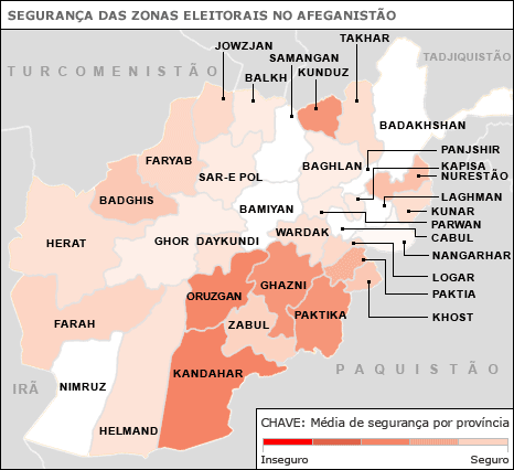 Já em Jalalabad, capital da Província de Nangarhar, alguns distritos não registraram o comparecimento de nenhum eleitor.