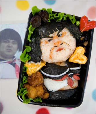 Além de personagens de desenhos animados, Kasumin prepara marmitas com caricaturas de artistas japoneses e temas tipicamente japoneses, como teatro Kabuki ou figuras de gueixas.
