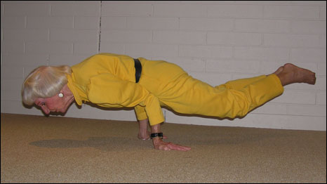 "Nunca se está velho demais para a ioga", disse ela, "o corpo pode se alongar cada vez mais".