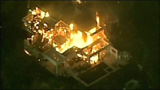 As chamas consumiram mais de 200 hectares da cidade e levaram o governador da Califórnia, Arnold Schwarznegger, a declarar estado de emergência. Pelo menos 20 construções teriam desabado e mais de 2 mil casas estão ameaçadas.