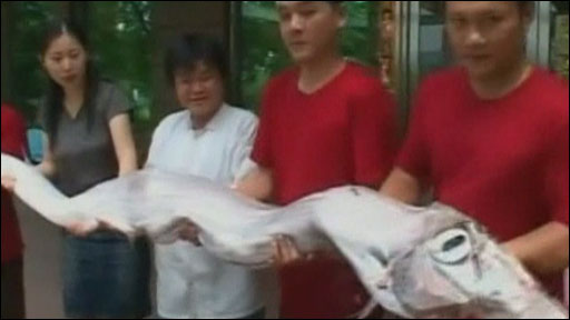 Pescadores em Taiwan levaram um susto ao tirar a rede do mar. Eles tinham acabado de pescar um peixe de cinco metros de comprimento, com mais de 100 quilos.