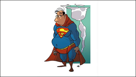 Um livro publicado na Itália reúne 40 caricaturas dos mais conhecidos super-heróis de revistas em quadrinhos, com um detalhe: o ilustrador Donald Soffritti imaginou-os todos já na meia idade ou velhice.