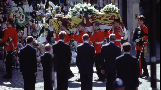 Cerca de um milhão de pessoas se reuniram nas ruas de Londres para ver o cortejo fúnebre de Diana, no começo de setembro. William e Harry caminharam atrás do caixão da mãe, que foi levado para a Abadia de Westminster, para a cerimônia fúnebre.