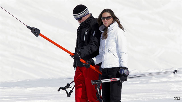 Então não custou muito até o primeiro beijo público do casal estar na capa dos jornais. A foto foi tirada quando o príncipe e Kate esquiavam em férias de inverno em Klosters, na Suíça.