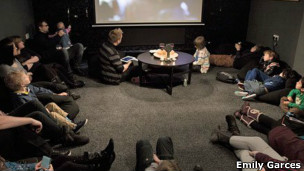 A missa dura apenas alguns minutos. Um sermão sobre a Quaresma é intercalado com trechos de filmes e uma música de fundo. A congregação senta em pufes em vez de bancos de madeira, e logo pão e vinho são passados de mão em mão. O ambiente é de informalidade.