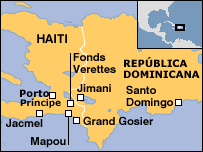 Segundo a organização, esses diques poderiam se romper caso mais chuvas intensas atingissem a região. “Nossa maior preocupação neste momento é que essas quatro vilas estão correndo risco de serem atingidas por deslizamentos de terra, lama e pedra”, disse o porta-voz da Cruz Vermelha, Barnard Barratt, à BBC. “Nós distribuímos coberturas plásticas às pessoas para que elas possam fazer abrigos provisórios em locais mais elevados, e estamos tentando fazer com que funcionários da Defesa Civil façam vigilância à noite.” O Programa Mundial de Alimentação disse ter distribuído, até esta segunda-feira, um total de 60 toneladas de rações de emergência às vítimas nas enchentes na Ilha de Hispaniola – onde, além do Haiti, fica a República Dominicana. A organização disse ter enviado nesta segunda-feira 40 toneladas de comida a Fonds Verrettes, uma das cidades mais atingidas no Haiti. A expectativa é que os alimentos atendam 8,4 mil pessoas e durem uma semana. Pelo menos 2 mil pessoas foram dadas como mortas ou desaparecidas na semana passada devido às enchentes na Ilha de Hispaniola. |