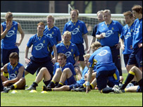 No entanto, os suecos também têm alguns trunfos ofensivos. Até abril, o principal deles era o meia Fredrik Ljunberg, do Arsenal, mas o atacante Hendrik Larsson, que anunciara a sua aposentadoria de jogos da seleção, acabou voltando atrás e hoje é a principal arma sueca. O veterano Larsson joga na seleção sueca desde 1992 e participou da histórica campanha na Copa de 1994, quando o seu time ficou em terceiro lugar. Com a volta dele à seleção, as chances de atuações mais convincentes aumentam. Outro que pode desequilibrar para os suecos é o atacante Zlatan Ibrahimovic. Filho de imigrantes iugoslavos, lutador de taekwondo, Ibrahimovic é o "bad boy" do futebol sueco e – se conseguir ficar fora de confusões extracampo – é uma das esperanças da equipe. O ponto fraco da seleção da Suécia, no entanto, é a falta de banco. Os treinadores Lagerbäck e Söderberg não têm muitas opções, e contusões dos titulares podem custar muito caro à seleção. Outro obstáculo diante da Suécia é o grupo em que o time caiu: a Itália e os vizinhos e rivais dinamarqueses podem complicar a classificação. A seleção que completa o grupo, a Bulgária, é bastante jovem, mas pode surpreender como zebra. |