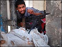 Helicópteros de combate atiraram nos rebeldes, e houve troca de tiros em terra.