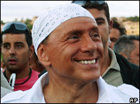 Berlusconi fez uma cirurgia plástica em volta dos olhos em dezembro de 2003 e admitiu o fato à imprensa um mês depois. Ele também desapareceu da vida pública várias vezes durante 2004 voltando depois com outra aparência. Em agosto, ele surpreendeu jornalistas ao usar uma bandana amarrada na cabeça, ao estilo de um pirata, durante uma visita do primeiro-ministro britânico, Tony Blair, à sua casa na Sardenha. |