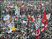 Segundo a correspondente da BBC em Colônia, Jane Little, cerca de 800 mil pessoas, muitos jovens, passaram a noite ao ar livre, esperando pela missa numa atmosfera que lembrava mais um festival de música do que uma missa.