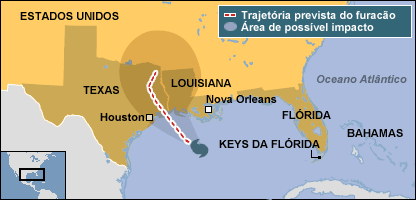 O presidente americano, George W. Bush, deve ir à região nesta sexta-feira para verificar os preparativos para a chegada do furacão.