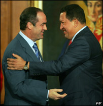 José Bono (esq), Ministro da Defesa espanhol, com Chavez, em Caracas