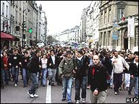 Centenas de pessoas no centro de Paris receberam a notícia com vaias.