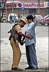 Policial indiano faz revista em operação em Srinagar