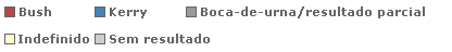 Os Estados vermelhos são aqueles em que Bush já ganhou segundo a apuração ou em que as projeções indicam que ele ganhará. Aqueles em azul teriam Kerry como vencedor na apuração oficial ou nas projeções.