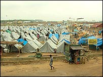 "Não foi fornecido terreno nem espaço para estas famílias em particular. As ONGs distribuíram algum material de construção no ano passado mas não há mais nada", disse R.M. Nathan, do Movimento de Ação dos Povos. Em outros lugares famílias afetadas enfrentam problemas semelhantes. No norte da cidade, em Kargil Nagar, uma colônia de famílias em abrigos temporários aguarda para ser levada para acomodações semipermanentes. Esta é uma área fortemente industrializada no subúrbio da cidade. As emissões de indústrias químicas das proximidades se misturam ao cheiro de esgoto da região. Um mar de tendas cinzentas pode ser visto à distância, colunas de fumaça se erguem de fornos e a chuva torna o chão lamacento. Depois de um incêndio em junho que destruiu abrigos fornecidos por ONGs, cerca de 2,2 mil famílias estão novamente tendo que enfrentar enchentes nas terras baixas alocadas pelo governo. "Abrigo tem sido o maior problema, mas nós estamos comendo. Organizações não-governamentais têm cuidado de nós e nos oferecido comida. Devemos nos mudar para abrigos semipermanentes em algum momento no mês que vem." Kanchana tem 28 anos e vive numa tenda, de 2m por 3m, com seis outros familiares. A vida das famílias geralmente melhora dramaticamente quando elas são transferidas para os abrigos semipermanentes. Elas passam a ter água, eletricidade e banheiro. "Se nós pressionamos o governo, eles começar a fornecer esses serviços, mas apenas se nós os pressionamos. Eles fizeram abrigos, mas eles são de má qualidade e em áreas inadequadas", afirma SD Rajendran, do Conselho de Coordenação das ONGs de Madra. "Essas áreas baixas são um problema. A terra tem de ser melhorada antes que a construção possa começar." Segundo Rajendran, o governo aceitou as sugestões para melhorar as áreas dos abrigos. "Quando as pessoas estiverem em abrigos adequados e na terra certa nós podemos começar o processo de promover o auto-sustento e fazer com que elas voltem a trabalhar." A pouco mais de três meses do primeiro aniversário do tsunami, as ONGs pretendem ter até 3,7 mil famílias adequadamente abrigadas em um mês. As famílias negligenciadas no sul da cidade só podem esperar receber tratamento semelhante. |