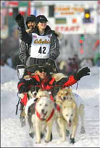 Teve início neste domingo uma das corridas de cães mais famosas do mundo, a de Iditarod, que cruza o Alasca. Os 83 times vão cobrir uma distância de 1.770 km, durante nove ou dez dias, nos quais vão enfrentar as ventanias na tundra, duas cadeias montanhosas e atravessar mares e rios gelados. Ao vencedor, está reservado um prêmio de US$ 69 mil (o equivalente a cerca de R$ 145.500). A corrida foi inspirada em uma heróica travessia ocorrida em 1925. Neve Na época, uma equipe enfrentou o feroz inverno do Alasca para levar medicamentos à cidade de Nome e conter um surto de difteria. No sábado, os participantes participaram de uma apresentação na capital do Alasca Anchorage. A corrida em si teve início na pequena vila de Willow, localizada mais de 100 km ao norte. Willow vem sendo o ponto inicial da corrida nos últimos três anos, já que o local anterior, a cidade de Wasila, não apresenta neve o suficiente. |