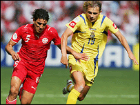 O gol ucraniano só saiu aos 25 minutos na cobrança de um pênalti duvidoso marcado contra a Tunísia. O artilheiro Andriy Shevchenko caiu dentro da área ao disputar uma bola com o zagueiro Karim Hagui e o juiz marcou a penalidade.