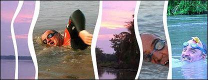 Martin Strel, um esloveno de 52 anos, tenta se tornar a primeira pessoa a nadar o rio Amazonas em toda sua extensão, cobrindo mais de 5.400 km.