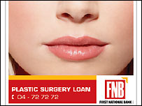 Em seu site na Internet, o First National Bank oferece o financiamento garantindo que "beleza não é mais uma luxúria".