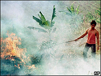 A Indonésia é o país que destrói suas florestas com maior velocidade – são desmatados o equivalente a 300 campos de futebol por hora. A informação, divulgada pela organização não-governamental Greenpeace, será incluída na próxima edição do Livro Guinness de Recordes, a ser publicado em setembro. "A Indonésia já perdeu 72% de suas extensas florestas ancestrais e metade permanece ameaçada pelo comércio de madeira, queimadas e desmatamento para plantação de palmeiras", diz um comunicado da ONG de defesa do meio ambiente. O texto que será divulgado no livro Guinness diz: "Dos 44 países que respondem por 90% das florestas do mundo, o país que registra a taxa de desmatamento anual mais alta é a Indonésia com 1,8 milhão de hectares de floresta destruídos a cada ano entre 2000 e 2005, uma taxa de 2% anuais ou 51 km² destruídos por dia". "É uma vergonha nacional para a Indonésia ter essa distinção no livro de recordes", afirma o Greenpeace. Brasil A organização destaca, no entanto, que a Indonésia destrói suas florestas mais rápido, mas o Brasil desmata uma área maior por ano. Um recente relatório da agência da Organização das Nações Unidas (ONU) para a Agricultura e a Alimentação (FAO) indica que, entre 2000 e 2005, em comparação com 1990 a 2000, o Brasil registrou perdas anuais de 0,5% a 0,6% da cobertura florestal brasileira. Em números absolutos, de acordo com a FAO, foram desmatados mais de 31 mil km² por ano no Brasil entre 2000 e 2005 – contra 18 mil km² anuais da Indonésia, no mesmo período, como foi registrado no Livro Guinness de Recordes. O Greenpeace pediu ao governo da Indonésia que imponha uma moratória no comércio de madeira para conter o desmatamento. "Apenas a Indonésia pode proteger as suas florestas e as pessoas que dependem delas, mas governos da União Européia, China, Japão e América do Norte também devem garantir que seus países não se tornem casas de compensação para produtos de florestas destruídas. Essa desonra pertence a eles também", diz o Greenpeace. |