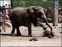 Um dia depois de quase matar seu filhote, uma elefanta do zoológico de Berlim "fez as pazes" com o recém-nascido nesta quinta-feira.