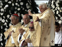 NOTÍCIAS RELACIONADAS Leonardo Boff vai a 'encontro de perseguidos' na Espanha, diz jornal18 maio, 2007 | BBC Report Visita do papa provoca reações mistas em outras religiões17 maio, 2007 | BBC Report Papa mostrou 'fraquezas' no Brasil, diz jornal alemão16 maio, 2007 | BBC Report Crítica a machismo não abre caminho para ordenação de freiras, diz bispo14 maio, 2007 | BBC Report Papa, violência e o metrô de São Paulo na visão de um repórter inglês 13 maio, 2007 | BBC Report Papa ataca machismo na América Latina13 maio, 2007 | BBC Report Marxismo e capitalismo fizeram 'falsas promesas', diz papa13 maio, 2007 | BBC Report Papa diz que viveu 'horas intensas e inesquecíveis'13 maio, 2007 | BBC Report | |||||||||||||||||||||||||||||||||||||||||||||||||||||||||||||||||||||||||||||||||||||||||||||||||||||||||||||
