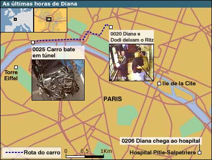 À uma e meia da manhã, Dodi Al Fayed foi declarado morto no local do acidente. A princesa chegou viva ao hospital, às duas horas e seis minutos.