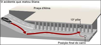 Apenas cinco minutos após deixar o Ritz, o Mercedes bateu no túnel embaixo da Praça D'Alma, atingindo a calçada antes de ser jogado contra um dos pilares do túnel.