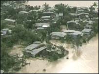 Uma vasta área na parte central do Vietnã foi inundada pelas chuvas torrenciais que têm atingido a região nos últimos dias. Pelo menos 24 pessoas morreram e milhares foram levadas para áreas mais altas. Água e alimentos estão sendo distrubuídos pelas equipes de ajuda. Essa é a quinta enchente na região em apenas 6 semanas. Desde o começo de outubro, mais de 200 pessoas morreram. A previsão, de acordo com institutos de meteorologia, é de mais chuva nos próximos dias. |