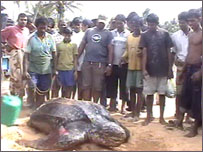 Tartaruga gigante é resgatada no Sri Lanka; assista