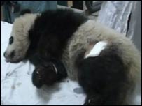 Veterinários no norte da China operaram no sábado um urso panda gigante que foi encontrado em uma reserva florestal com uma