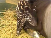 Com apenas duas semanas de vida, uma filhote de anta malaia fez sua estréia no zoológico de Tama, no Japão.