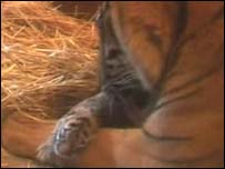 Três filhotes de tigre de Sumatra, espécie ameaçada de extinção, nasceram nesta segunda-feira no parque temático Dreamworld, na Austrália.