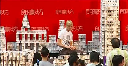 Berg já construiu com cartas um castelo de Cinderela, uma paisagem de Nova York e até uma torre de quase 8 metros de altura – que rendeu ao americano uma entrada no Livro Guiness dos Recordes. A obra vai ficar em exposição ao público de Hong Kong até o fim de julho. |
