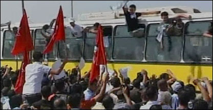 Em Bitunia, os prisioneiros foram recebidos por centenas de palestinos e de lá foram ao quartel general da Autoridade Palestina em Ramallah, onde se encontraram com o presidente palestino Mahmoud Abbas.