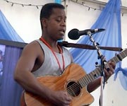 Watch (1'43) a video of Modeste's set in the World on your Street Tent, Womad 2002.