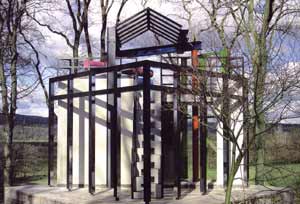 designed by James Stirling, Charles Jencks, Maggie Keswick, and Eduardo Paolozzi.