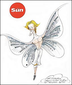 Caption: 'Two Butterflies Drawn Towards The Sun on Newspaper Wings'