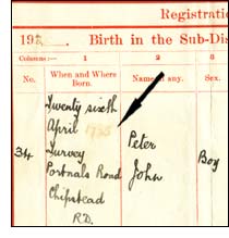 Peter attempts to erase his year of birth (1925) from his birth certificate |