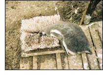 Amanda believes the penguins have their own personalities. There is one particular chick she calls "the boot-brush boy" because he likes to lie on the base's prickly doormat. She's also a fan of their smell which reminds her of Barbour jackets!