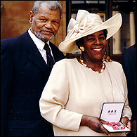 Mavis and her husband at Buckingham Palace, after receiving her MBE |