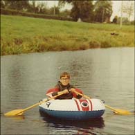 Lewis Griffiths in the early 70's in his dinghy on Montgomery canal near Burgeddin locks |