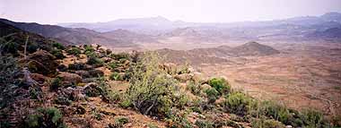 The mountains of the southern Namib desert, flushed with green after a rainshower. |