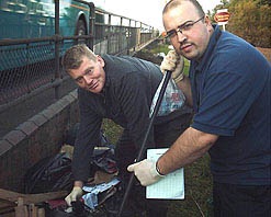 | Rat catching: Tom and Marco Fernandez rifle through rubbish |