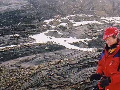 This is a lava flow that formed under the sea c 3.8 billion years ago - proof that there were oceans then. The scientist is a Brit now based in Stockholm.