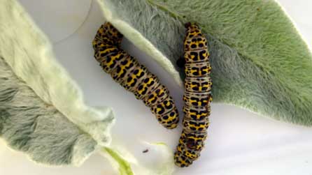 Lindys Cwcwll y Pannog (Shargacucillia verbasci,'The Mullein' yn saesneg) ydyn nhw. Erbyn hyn, mae y ddau yma wedi ymgartrefu ym meithrinfa lindys Duncan; ac, maes o law, fe fydd yr oedolion yn datblygu ac yn cael rhyddid Waunfawr.