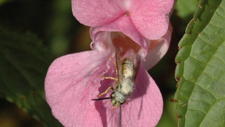 Ganol Awst, roedd haid o wenyn meirch (Vespula vulgaris - Common wasps) yn bwydo ar neithdar blodau Jac y Neidiwr (Impatiens glandulifera - Indian, neu Himalayan Balsam) ar lan yr afon Conwy, ger Llanrwst. Ac roedd pob un yn wyn gyda phaill fel y creadur uchod. Ydych chi wedi gweld golygfa debyg ?