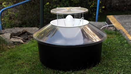 Mae yna nifer o hen focsus wyau ym mhowlen y trap, lle gall y gwyfynod fydd wedi cael eu hudo i mewn iddo gael lloches ddiogel hyd nes y byddant yn cael eu rhyddhau yn y bore.
