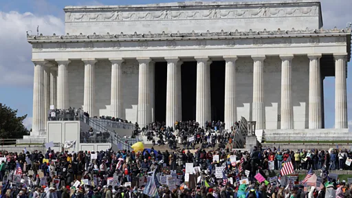Центр Вашингтона в течение всего дня был охвачен митингами, толпы людей прошли маршем по столице страны. Протестующие выстроились вдоль ступеней Мемориала Линкольна и заполнили Национальную аллею.